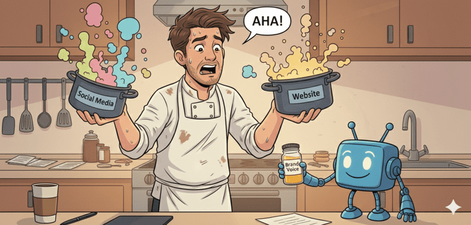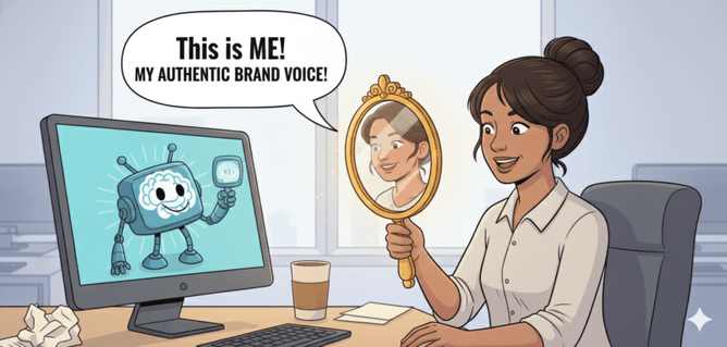 Here's the brilliant part: you probably already have examples of your authentic business voice scattered across your social media, emails, or website. Instead of trying to invent your tone of voice from scratch, let AI help you identify and document what's already working.